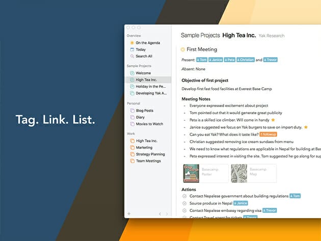 It’s the only note-taking app with a strong emphasis on the passage of time, making it the perfect fit for any project. Use it for personal projects like jotting down recipes you’d like to try or take on major projects at work, planning your next meeting, or checking off your daily tasks.