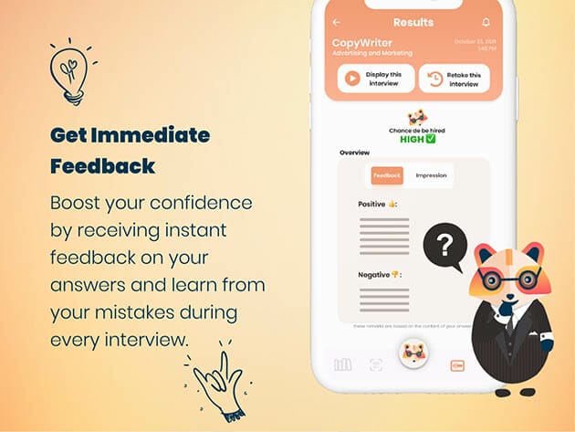 • Generate interviews from any job offers listed on popular job boards (Linkedin, Indeed, Glassdoor, Monster, ZipRecruiter) and start practicing