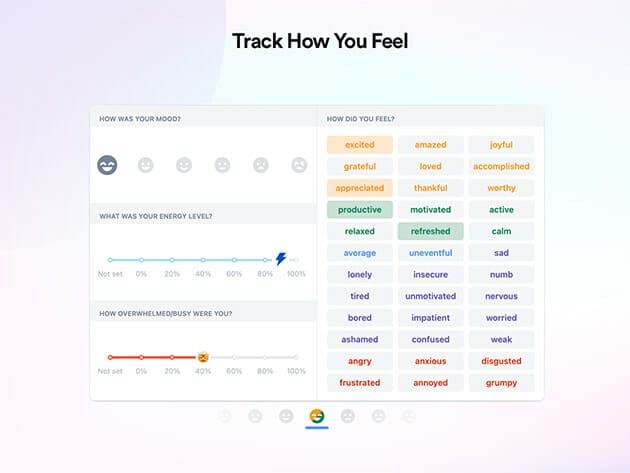 Track How You Feel. Whether you have trouble managing mood swings, stress, anxiety, or depression, tracking how you feel will give you visibility into how are you doing over time and how your new habits affect you to help you overcome these challenging conditions.