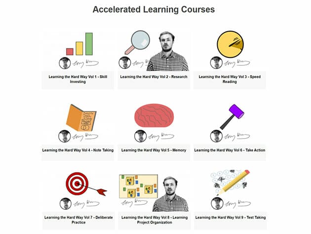 Several of the courses also come with in-depth notes in PDF format, so you can choose between reading notes or watching the video lectures. There are dozens of other courses in this bundle that address the finer points of productivity, planning, organizing, and accelerated learning. There is even a course specifically dedicated to helping you navigate the course library, based on your goals and priorities. You’ll get a full flowchart that shows the best path through my courses for your situation.