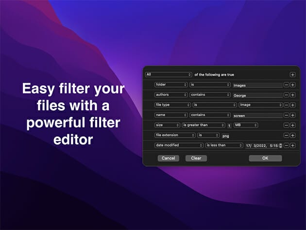 You can select a specific kind of file to list. For example, you can choose to export to Excel a list with all the audio files of your iTunes Music folder or all the pdf files from your Documents folder.