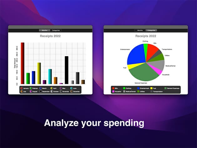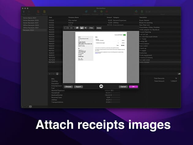 Save and organize your receipts into multiple accounts with just a few mouse clicks. Additionally, you can group your expenses into different user-definable categories and view how much money you spend in any given category. Use personalized templates using exiting receipts in order to reduce data entry to a minimum and improve your productivity.